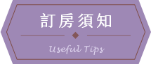 | ※ | 住宿當日,如遇天災(颱風、地震),經當地政府或旅客所在地政府發布停止上班上課判定準則,可退還全額訂金或保留訂金。 |